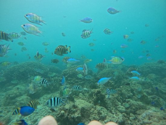 スタッフの方がフレンドリーな方ばかりでジョークの連続で終始楽しめました。アクアウォークでは、餌やりがあり、たくさんのトロピカルな魚達が目の前を泳いでくれて楽しめました。イルカウォッチングでは、たくさんのイルカ達に会え感動しました!そして、船の操縦までさせてもらえ、子供➕ついでに私(母)まで写真撮影させてもらいとても良い思い出が出来ました。シュノーケリングの時間も長く海の世界を堪能できるPlanであ
