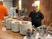 食事の準備中。サラダもほかの肉類も十分に用意されてました。