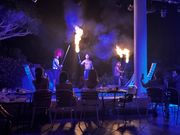ご飯は豪華で、ショーも盛り上がって楽しかったです! 最初のウクレレなどの演奏と歌もよかったです🎶 ショーは生演奏でした。 最後に記念写真もとっていただけました。 ご飯はステーキ、お寿司、カレー、うどんもおいしく、ビュッフェでたくさん食べられてうれしかったです。