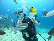 初めてのスキューバダイビングにきんちょうしていましたな、インストラクターの市川さんの軽快なトークでとても楽しめました。 海の水もとても綺麗で浅瀬から沢山のお魚を見ることができ、大満足です!