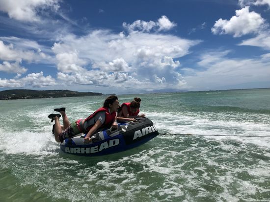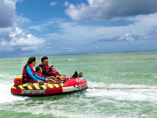 スリル満点!気分爽快のバナナボートは、ハイスピードからゆっくりまでスピートはお客様次第。南国の定番バナナボートに乗り込んで、振り落とされないようグアムの海を駆け抜けよう。家族や友達、みんなでワイワイ盛り上がるなら、やっぱりバナナボートは外せない!