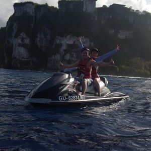 ツアー当日はあいにくの曇り空で途中スコールもあり、正直予想していたロケーションとは違っていましたが、とにかくスリル満点で貴重な体験ができました!!二人乗りで彼氏がまずは操縦。簡単な説明だけでしたが、最初に浅瀬で練習があるのですぐコツはつかめます!そして何周かグルグル回っていざ、出発!!