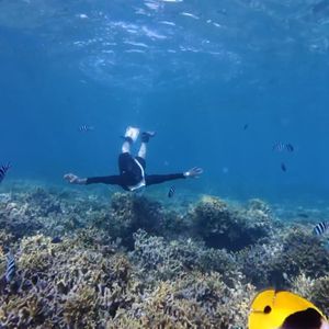 酔いやすい人は酔い止めをしっかり飲んでいくことをお勧めします。スキューバもお勧めしない天候ではありましたがどうしても記念にやりたくてやりました。荒波の中潜る位置まで歩くのは大変でしたが潜ったは楽しくて、怖がりの私でも水深6メートルまで潜ることができました。しっかり呼吸法を教えてくださるので習得も家族4人ともできました。インストラクターの方も危なくないようしっかり目を張ってくれて安心でした。今度は天気がいい時に二つともリベンジしたいです。本当にありがとうございました。