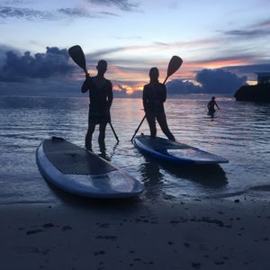 初めて体験しました。前から興味があったのですが、素人なのでなかなか勇気が出ずにいましたがこの旅行を機にやってみようと予約しました。当日はすでに別のアクティビティでクタクタだったのですが、僕らしか居なかったのでのんびりと練習させてもらえて良かったです。疲れていたのでシュノーケリングはやりませんでしたが、その分ボードの上でじっくり夕焼けを待つことができてその時間も楽しめました写真もたくさん撮ってもらって良い思い出になりました!海の上で聞いた薬の話とても参考になりました〜 カワサキさんありがとうまたいつか乗りに行きますね〜