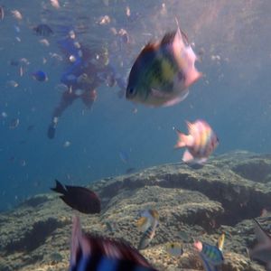 浅瀬では見られないたくさんの魚と、人間に慣れてる海亀も当たってくる勢いで、それは楽しかったです。