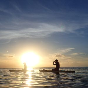 立てなくてもゆっくりコツを教えて貰えるので奥さんはゆっくりながら立ったり座ったりと繰り返してました。最初は乗り方を覚えてゆっくりやりながらシュノーケルのポイントまで行き、そこでシュノーケルをさせてもらいました。これが本当に凄くて魚の量が普通のシュノーケルとは段違いでした。怖いくらい多かったので勇気がいるかもしれないです。シュノーケルの後はそのまま夕日を見ながらまたSUPで元いた岸まで戻りました。戻るときも夕日をバックにグアムの海の真ん中にいることを実感できてとても感動しました。