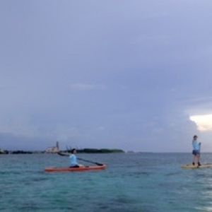 3回目のグアム旅行で、初めてマリンスポーツを体験しました。今回は姉妹での参加で、サンセットも一緒に見られるとの事で、以前から体験したいと思っていた、SUPとグアムの海は透明度が高いのでシュノーケリングのセットを選びました!