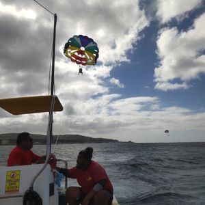 インストラクターの方が面白い方で、操縦しながら楽しいジョークで沢山笑わせてくれました。パラセーリングもとても楽しくあっという間に終わってしまいました!途中でウミガメにも出会えてラッキーでした。ボートでの移動中は波が激しく海水を浴びてしまいました。酔い止め薬は必須です!