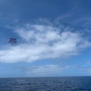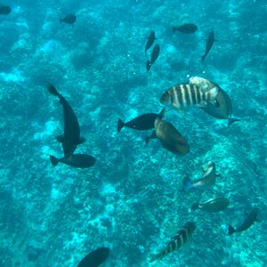 パラセーリングではカメが泳いでいるのがたまたま見れました。ボートで帰る途中にイルカがたまたま見れました。シュノーケリングでは危険でないサメが見れました。とても楽しかったです。また参加したいです。