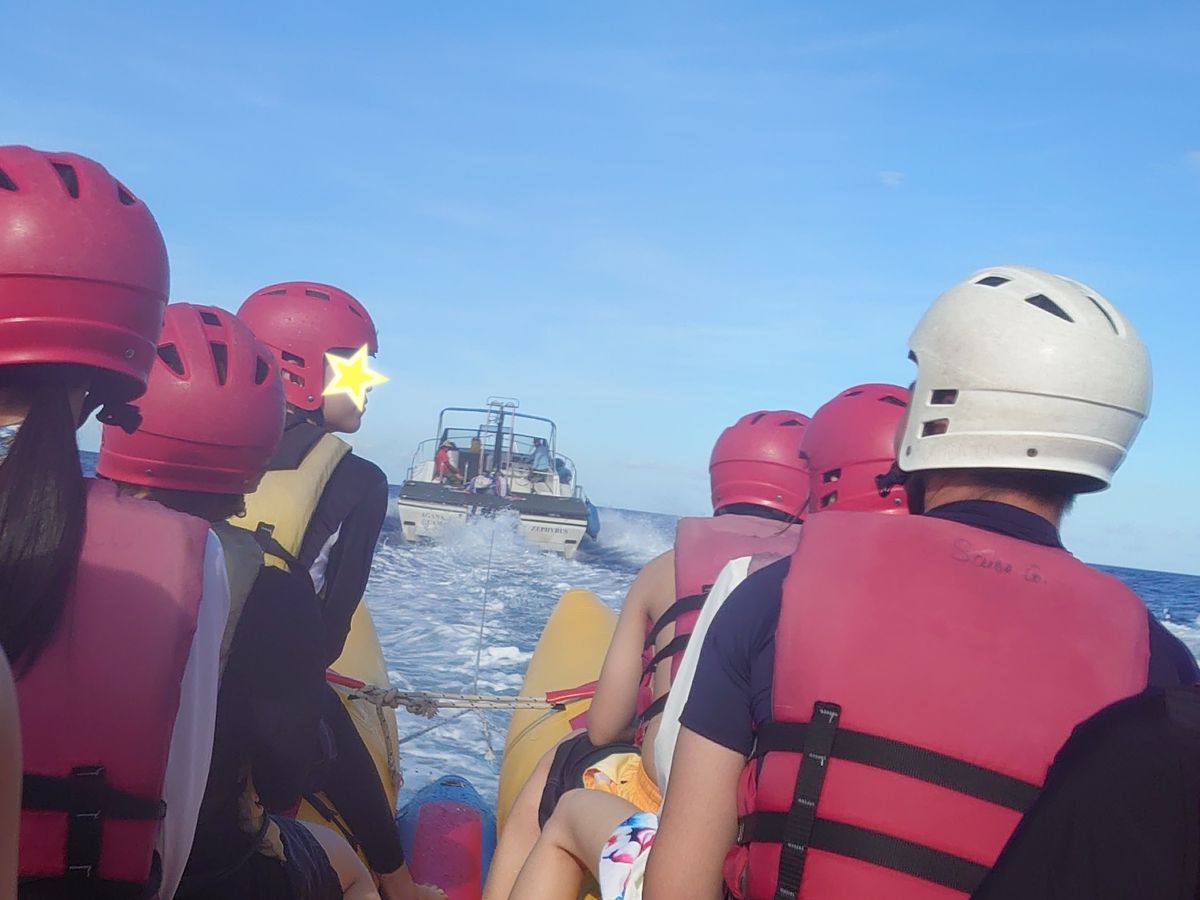 初めてのマリンスポーツだったのでとても楽しみにしていました。アクティビティ自体は楽しかったですが、船でアクティビティのスポットまで移動する際、他のグループの方と相乗りになり、他の方のアクティビティの時間も船で待機しないといけなくて、少し船酔いしました。あと天気があまり良くないのが残念でした。