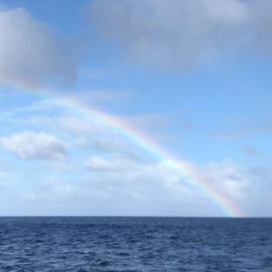 待っている間に、水平線に虹がかかっていました。