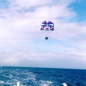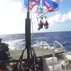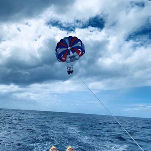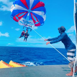 女2人で初めての参加でしたが、大大大満足です!パラセリングは船で移動の為、酔いやすい人は酔い止めを飲んでおくと良いと思います!1日で、5種類も味わうことが出来、さらにトランポリンや浮き輪やカヌーのような乗り物も、時間の合間に自由に遊ぶことが出来、時間も有効に使えました!