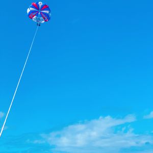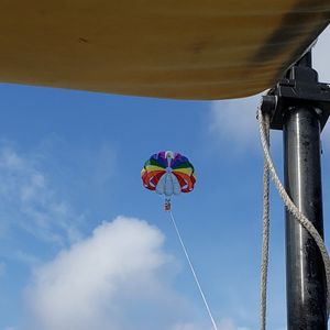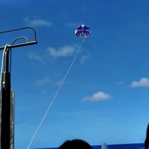 空に赤白青のパラセイルがとても映えて、すてきな写真が撮れました。