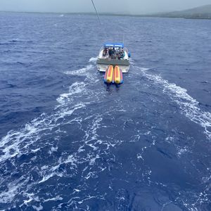 バナナボートはもっと激しい動きを期待していたので、水上をただ走るだけで、パラセーリングをするためにバナナボートで連れて行かれた感じで拍子抜けでした。パラセーリングは程よく楽しかったです。