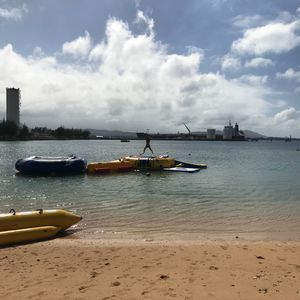 風の影響で、パラセイリングが中止になったのですが、中止の連絡も遅く、かなり待たされました。また返金や予約変更の方法がわからず、困りました。規定として書いてあると、わかりやすいと思いました。ジェットスキー、バナナボードは、スタッフの案内もスムーズで楽しかったです。ウォーターパークもすいていて、待つことなく、アトラクションに参加できました。