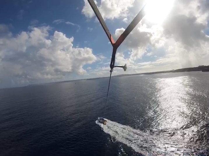 パラセーリングとても楽しかったです!あまり高い所は得意ではないのですが、景色の良さと気持ち良さに怖さより楽しさの方が勝りました!ある程度降りてきた所で水に落とされるのですがそれも楽しかったです。