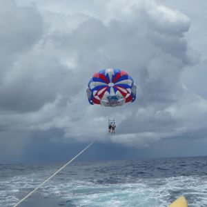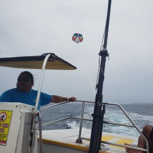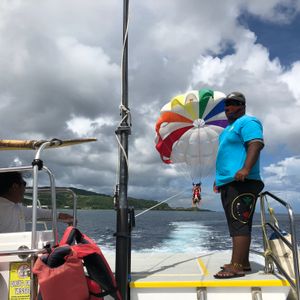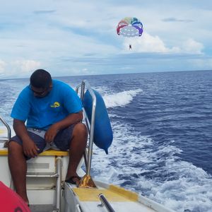 パラセーリングのポイントまで行くまでの船でスコールに当たりそうな予感がしましたがドライバーが上手く避けてくれて無事気持ちのいいパラセーリングが体験出来ました!そのあと近くの展望塔から日本では見ることの出来ないような熱帯魚を見ることが出来てこちらはツアープランに記載がなかったのでお得に感じました。イルカウォッチングではイルカの大群に3.4回遭遇することが出来、イルカが姿を現した際には近くに寄ってくれました!帰りにたまたまウミガメをみることもできました!もしイルカが見れなくてもギフトなど特典があるそうです。とてもいい体験をすることが出来ました!ありがとうございました!!