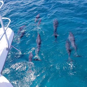 想像以上に間近でイルカを見ることができ、感動しました。イルカ以外にもウミガメなどの海の生物も見ることが出来ました。船の上で直射日光にさらされる時間が多くあるのでサングラスや帽子、日焼け止めを持っていくのがオススメです。