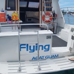 朝雨が降っていたので心配し、何分初体験の親子でドキドキでした。ボートに乗る時には晴れ間がみえてました。何だか分からぬままあっという間に空に、グアムの海が広がり、最高です 少し揺れたりもしますが、それも楽しいです。他のツアーで参加されてた方に写真撮ってもらえました。ボートを降りてバスでフッシュアイに到着、かわいいお魚さんたちを眺めてからまたバスで移動です。今度はさっきより大きいボートに乗りイルカに逢いに出発です。風も気持ちよく途中飛び魚たちの歓迎を受け、マンゴージュース飲んでいたらなんともう港⁉️イルカに出会えませんでした‼昼後はビュッフェ、パンケーキ美味しかったです。他は普通、ハエがいて困りました