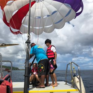 今回、初のグアム旅行で前回他国でもお世話になったVElTRAさんのマリンアクティビティに参加しました!パラセーリング、FISH EYE観光、イルカウォッチング、ランチがついた半日コースに申込みました。雨季でしたが雨が降ってもすぐやんだので、すべてのアクティビティを満喫できました。内容盛り沢山でしたが、移動は全て車で行きも帰りもホテルまで送迎がついていたので、楽々と充実した時間を過ごせました。出発前のメール質問にも丁寧、迅速に回答頂き安心してツアーに参加する事ができました。また利用したいです。ありがとうございました!
