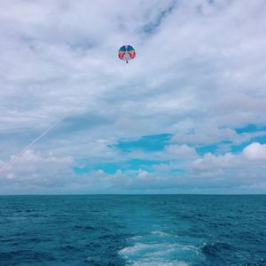 船に乗るとすぐにバナナボートに乗り、それから順番にパラセーリングを体験しました。どちらも初めてで楽しかったです。途中イルカにも会えてラッキーでした!