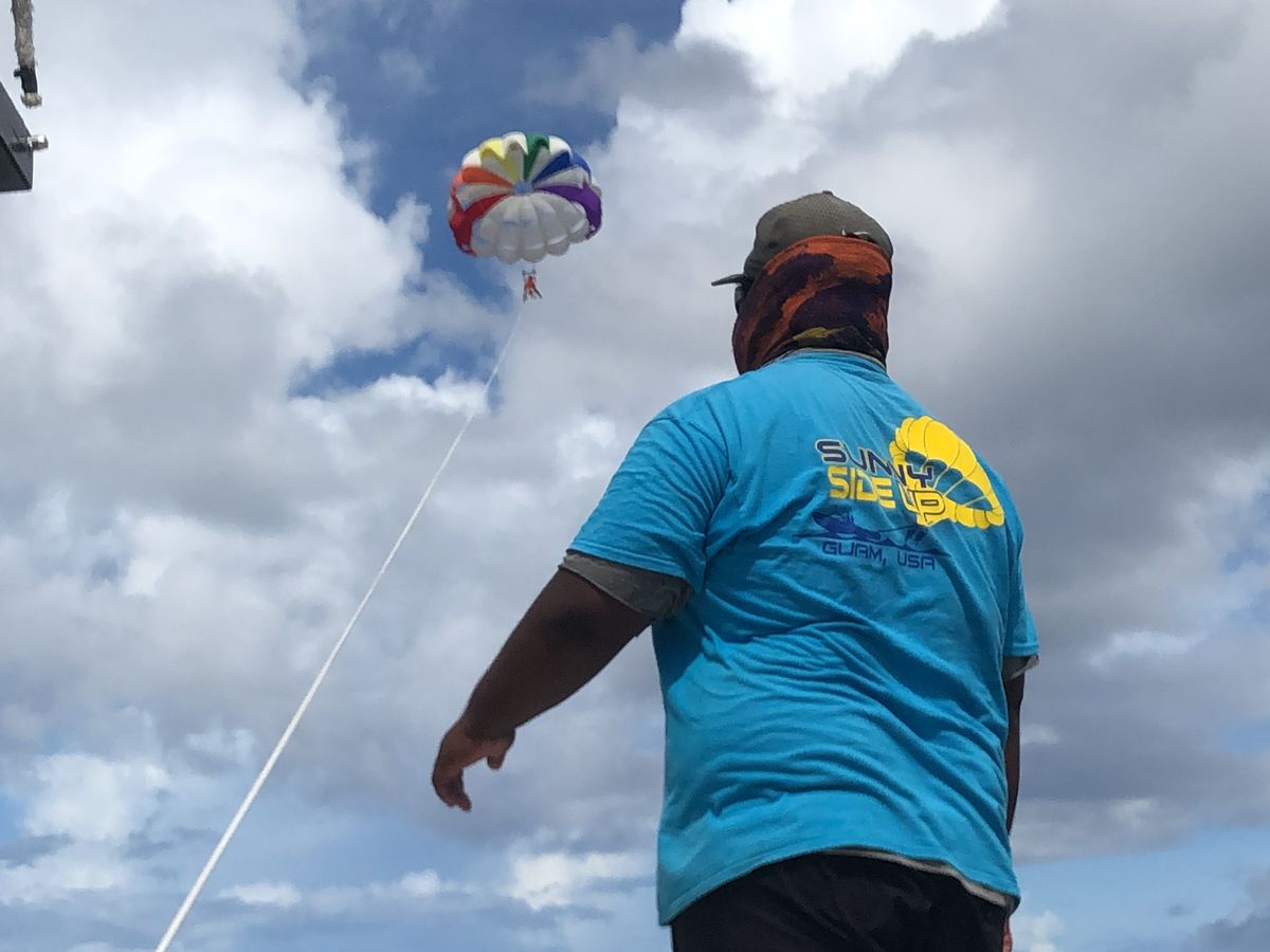 先日はお越しいただき、ありがとうございます。弊社のパラセーリングは多分・・・グアムでは一番高く上げてるので、少し怖かったかもしれませんね・・・(;^_^A