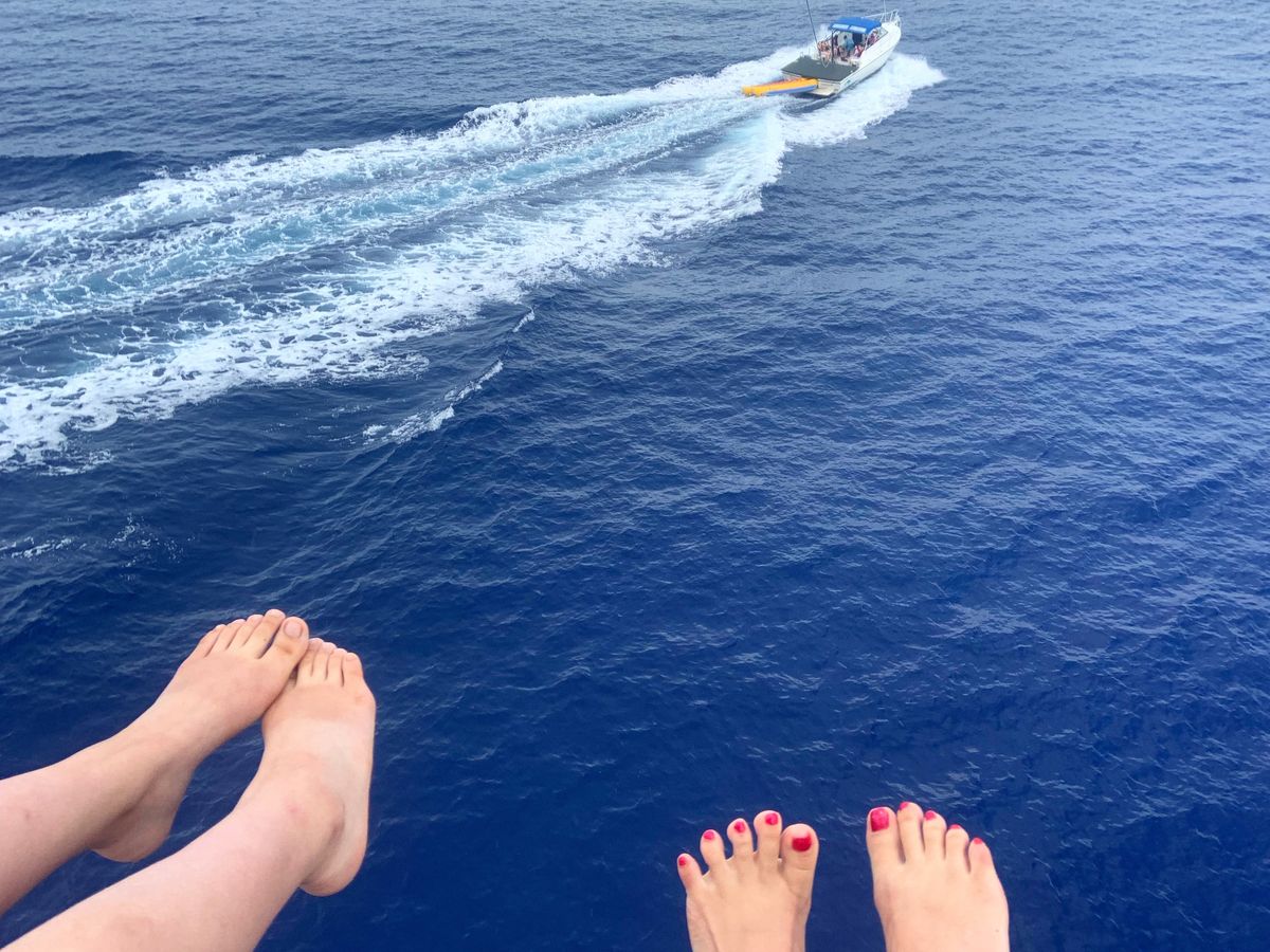 船に乗るとすぐにバナナボートに乗り、それから順番にパラセーリングを体験しました。どちらも初めてで楽しかったです。途中イルカにも会えてラッキーでした!