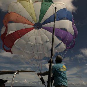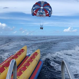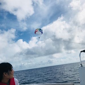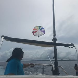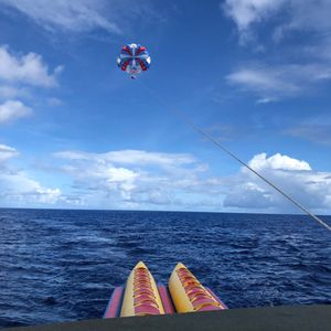 バナナボートに乗り、スリリングな体験をしながらパラセーリングスポットまで移動するので、乗船時間も短縮され、船酔いすることなく、サクッと体験できて大満足でした!!横並びのパラセーリングは、隣同士で話もできて、最高でした。スタッフの方の段取りも良かったです。ありがとうございました。