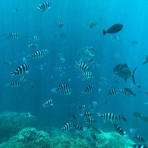 担当のインストラクターの方が丁寧に説明・指導してくださり…緊張もほぐれて海に潜ることができました!水中では魚に餌をあげたり、観察したりと日常では体験できない時間が過ごせました。しばらく潜っているとウミガメにも遭遇。インストラクターの方も2.3ヶ月に1度しか遭遇しないということでとってもラッキー‼︎