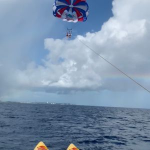 パラセーリング、バナナボートも安全に、スムーズに行っていて最高です。たまたま波が強い日だったので船酔いしてる方がいましたので、弱い人は酔い止め飲んでおいた方がいいと思います。