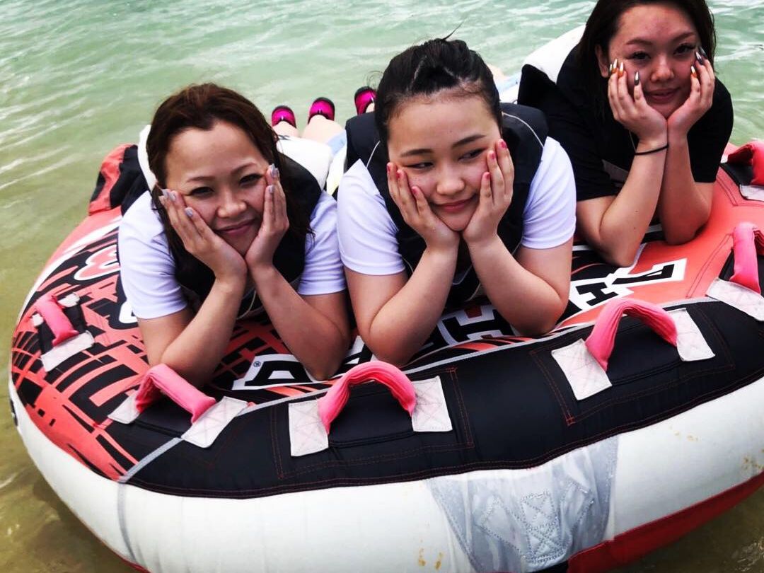 日本では体験できないスピードでバナナボートを引っ張ってもらって楽しかったです!