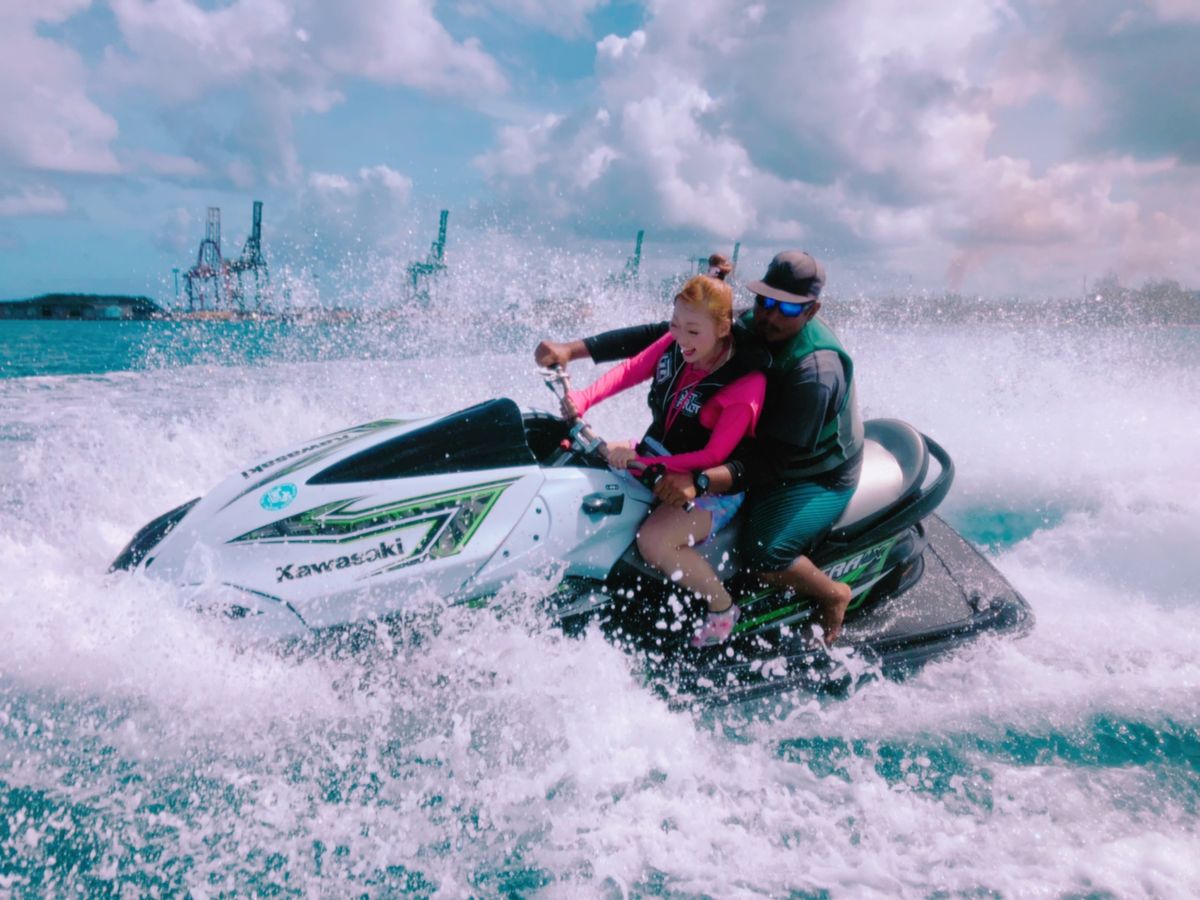 プールの入場券とパラシュート、ジェットスキーを体験しました。プールは何個かウォータースライダーが体験でき、とても楽しかったです。パラシュートも絶景を楽しむことができました。ジェットスキーの運転も簡単にでき、とても楽しかったです。