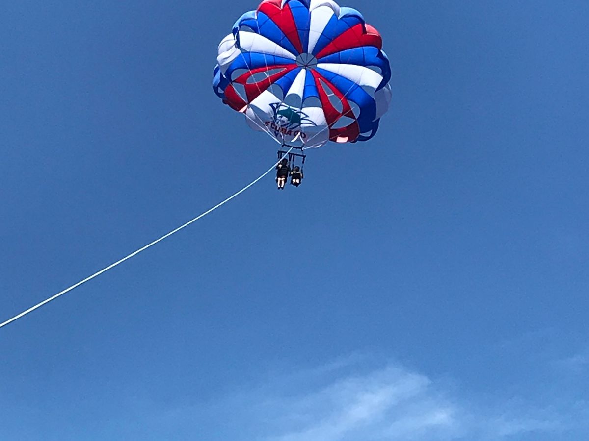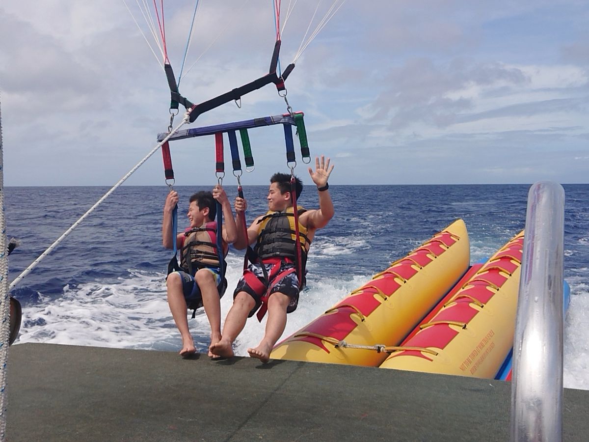 パラセーリングは、あっという間に終わってしまいましたが総じて最高でした。かたことの日本語が通じる外国人のスタッフさんに冗談を交えて会話をしてもらいながら、親+子のペアで飛ばせていただきました。(事前に説明がなかったのですが、子供はペアで飛ぶのが決まりなのかなと思い、従いました)