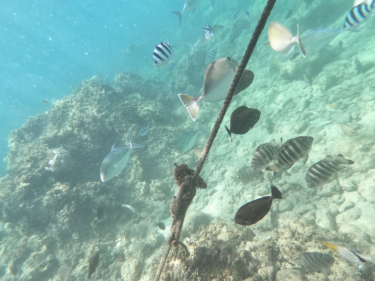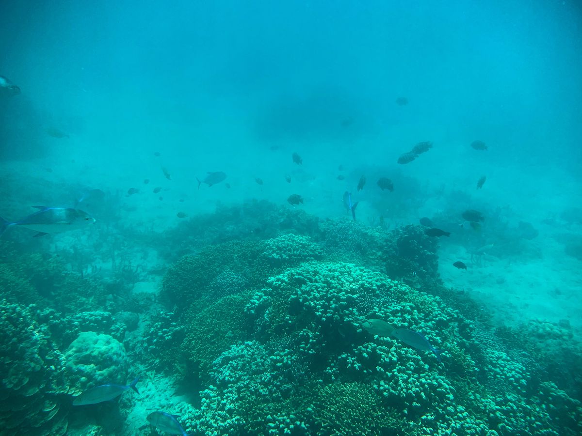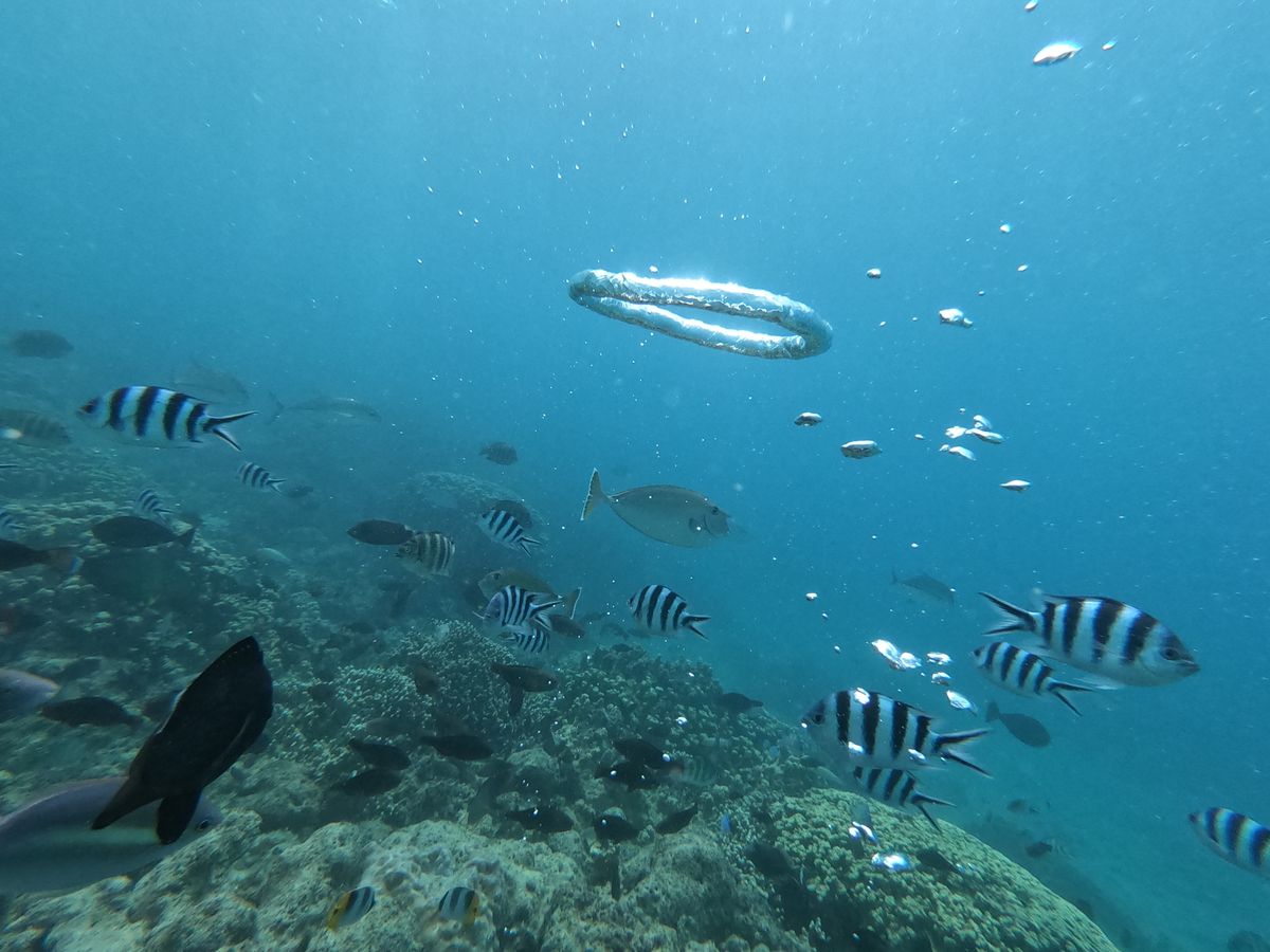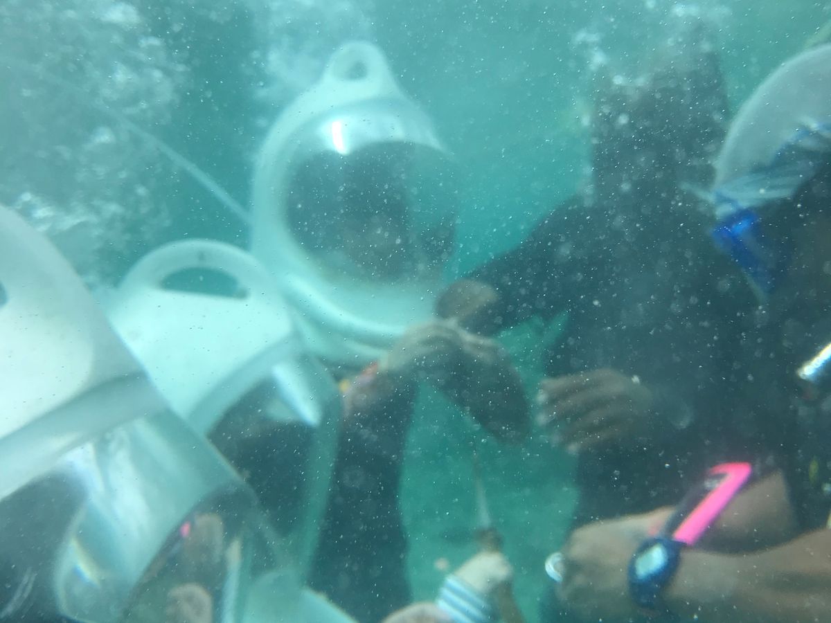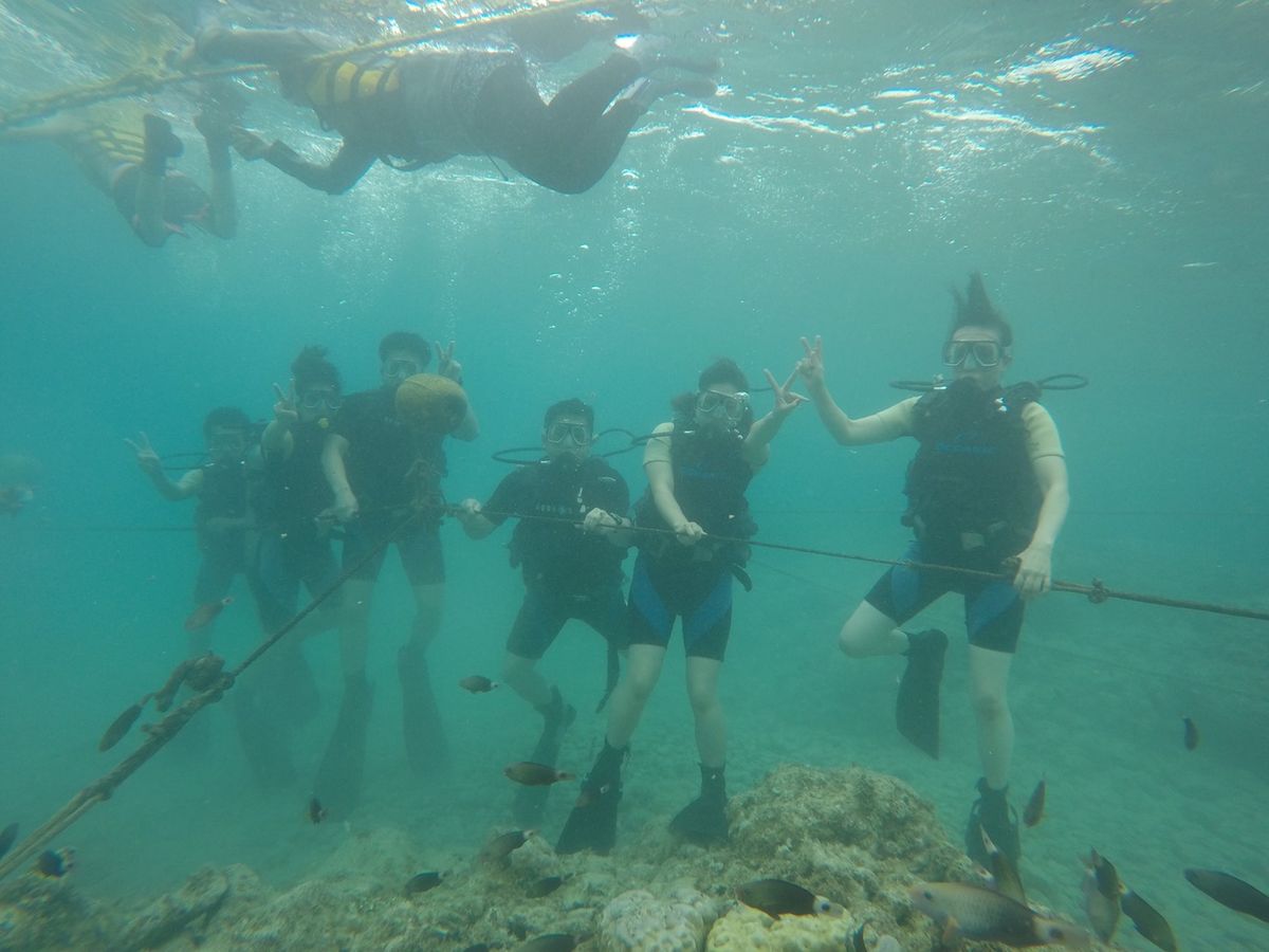 15分くらい空気ボンベの練習をして実際に潜ります。慣れるまではインストラクターの人が手をずっと握ってくれます。水深3mくらいでしたが体験には十分です。
