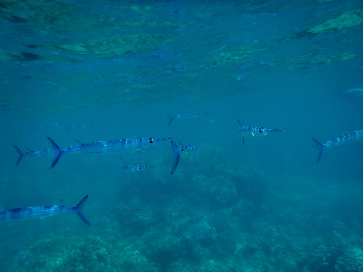 アクアウォークを待つ間のシュノーケリングでは魚の群れが目の前を通り、子供たちは大喜びでした。