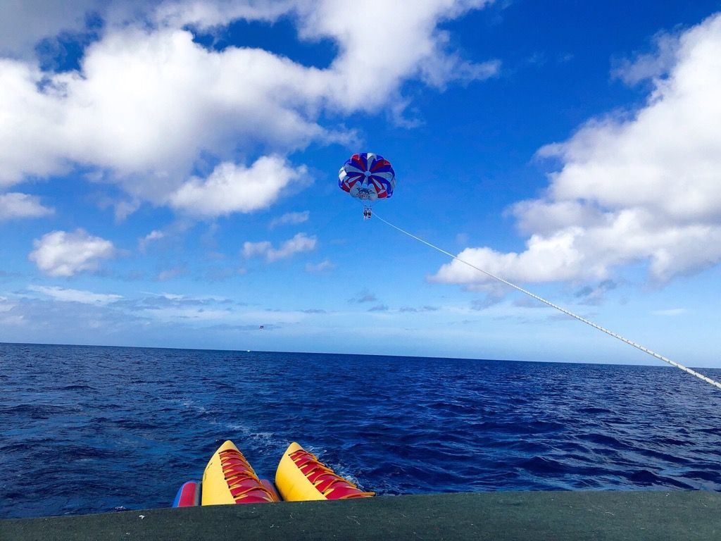 家族でのグアム旅行1番楽しみにしていました。パラセーリング&バナナボート気持ちよかったです。最後にお弁当を渡されて終わり。ホテルで食べました。