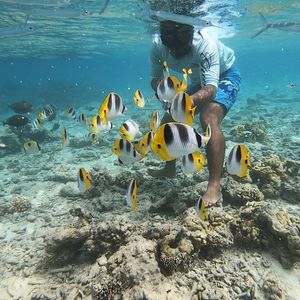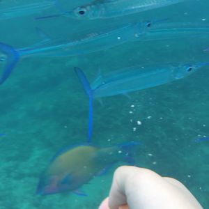 アクアウォークとシュノーケリングでは魚に餌やりをすることができ、とても楽しかったです!シュノーケリングはロープにつかまりながらの自由行動でした!