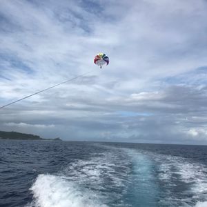 人生初のパラセーリングをグアムでやれて良かったです。あいにくの空模様で青い空は見られませんでしたが、晴れてたら感動はきっと何倍にもなるんだろうと思います。