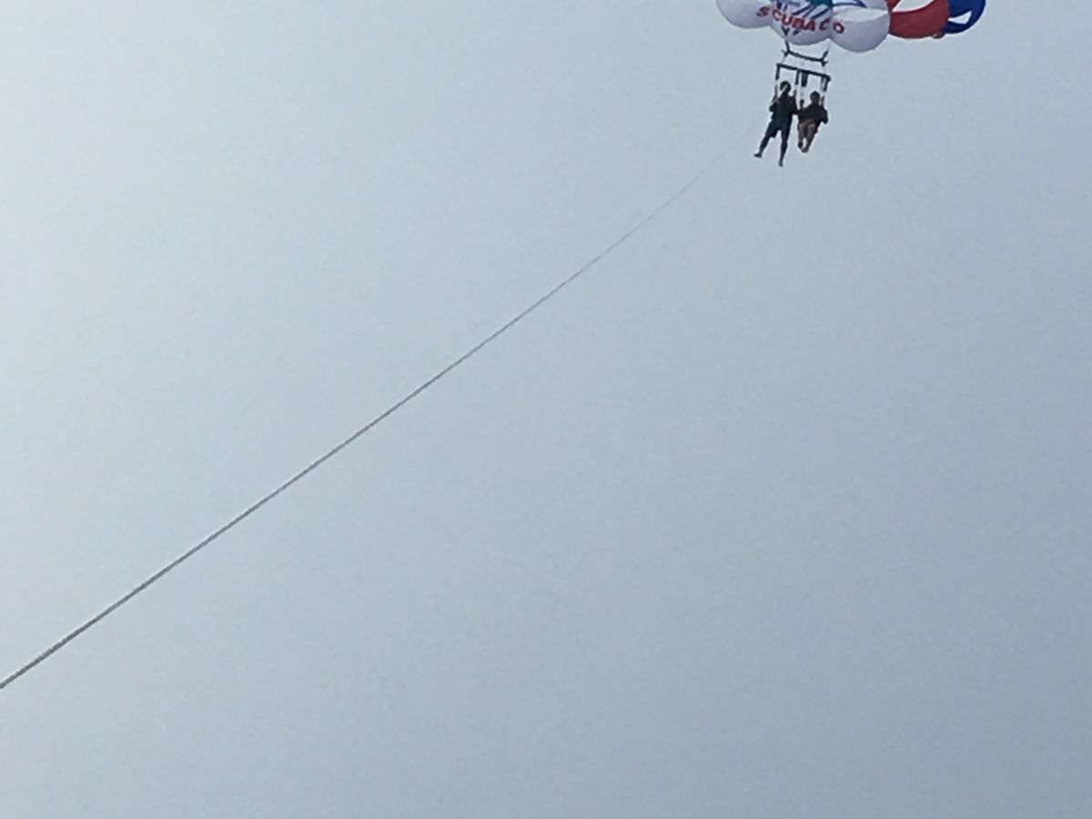 パラセーリングは結構な高さまで上げてくれて楽しかった。雨でバナナボートとパラセーリング中は顔が痛かった。