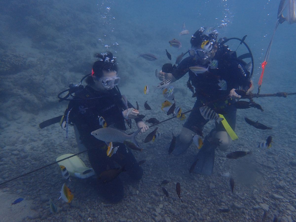 インストラクターの方がとても気さくな方でリラックスして潜る事が出来ました(^^)水中にロープを繋いでくれるので安心して潜れます!説明も丁寧で耳抜きが苦手な主人にもしっかりサポートして頂けたので2人共とても楽しめました(^^)v2ダイブにして良かったです!大満足✨あと水中カメラも追加して良かったです!素敵な写真と動画を沢山ありがとうございました(^_-)