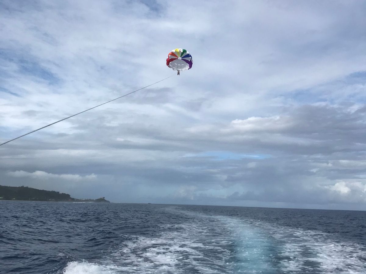 人生初のパラセーリングをグアムでやれて良かったです。あいにくの空模様で青い空は見られませんでしたが、晴れてたら感動はきっと何倍にもなるんだろうと思います。