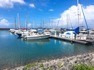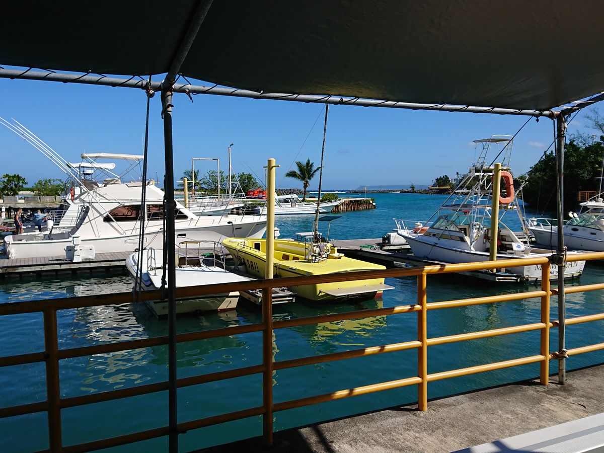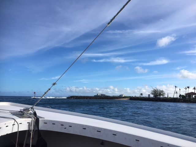 ホテルを出て、15分程度でマリーナに到着。待つことなく乗船し、沖に向かいました。青い海と空、もうそれだけで気分爽快です。