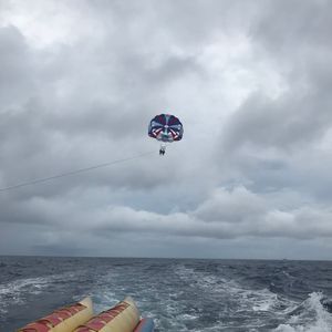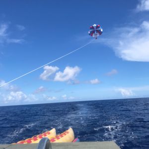 パラセーリング初めてでした。現地の人がすごく楽しませ上手で満足できました。場所移動して2家族と合流してジェット、WOW、バナナボートを順番にやったのですが待ち時間もパドルサーフィン、カヌー、水上トランポリンで楽しめました。遊び放題プランにして良かったです。