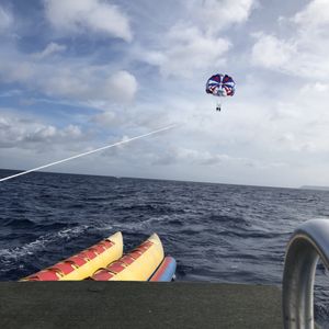 バナナボートとパラセーリングの体験をしました。バナナボートは浅瀬かと思いきや海の深いところで引っ張られスリル満点!翌日筋肉痛になりました。パラセーリングはとても優雅に景色を見ることができました。インストラクターの方も気さくでよかったです。