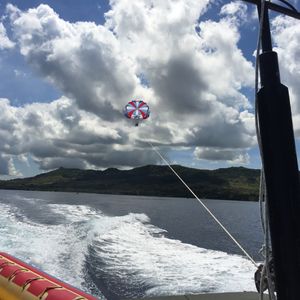 パラセーリング時は晴れ間の時でとてもきもちよくできましたが、他は雨でしたので思いっきり楽しむことはできませんでしたがスタッフの皆さんがとてもフレンドリーで楽しい会話ができました。