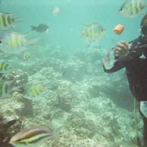 初めて海の中を潜って魚を見て餌をあげて、感動しました。