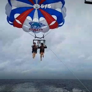 パラセイリングをやるのは初めてでしたが、かなり浜辺から遠くに行ってくれたので景色が綺麗でとても気持ちよかったです。船酔いされているかたも多かったので、酔いの対策をしておくといいかもしれません。アクアウォークでは親切丁寧に教えてくださり、安心んして海に入れました。色鮮やかな魚が沢山で水中カメラは是非持っていった方がいいと思います。