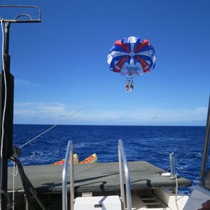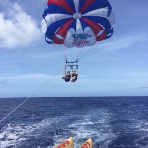 今年12月に家族4人で10回目のグアム旅行の際、今まではスキューバー・カンパニーを利用していたのですが、パラセーリングの見学者の値段が割安になることから初めて利用しました。初めて利用する会社だったので、少し不安もありましたが、どなたも気さくな方で自分の下手な英語でも楽しくコミュニケーションを取れました。又、空いていたこともあり時間いっぱいまで楽しませて頂きました。