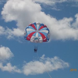 以前「バリ島」で体験して楽しかったので、機会があれば…と。今回の「グアム」のパラセーリングは、船で沖に出てからのスタート。高度も高く、滞空時間も長く、大空を満喫できました!最高です!!サービスのバナナボートも楽しかってです。
