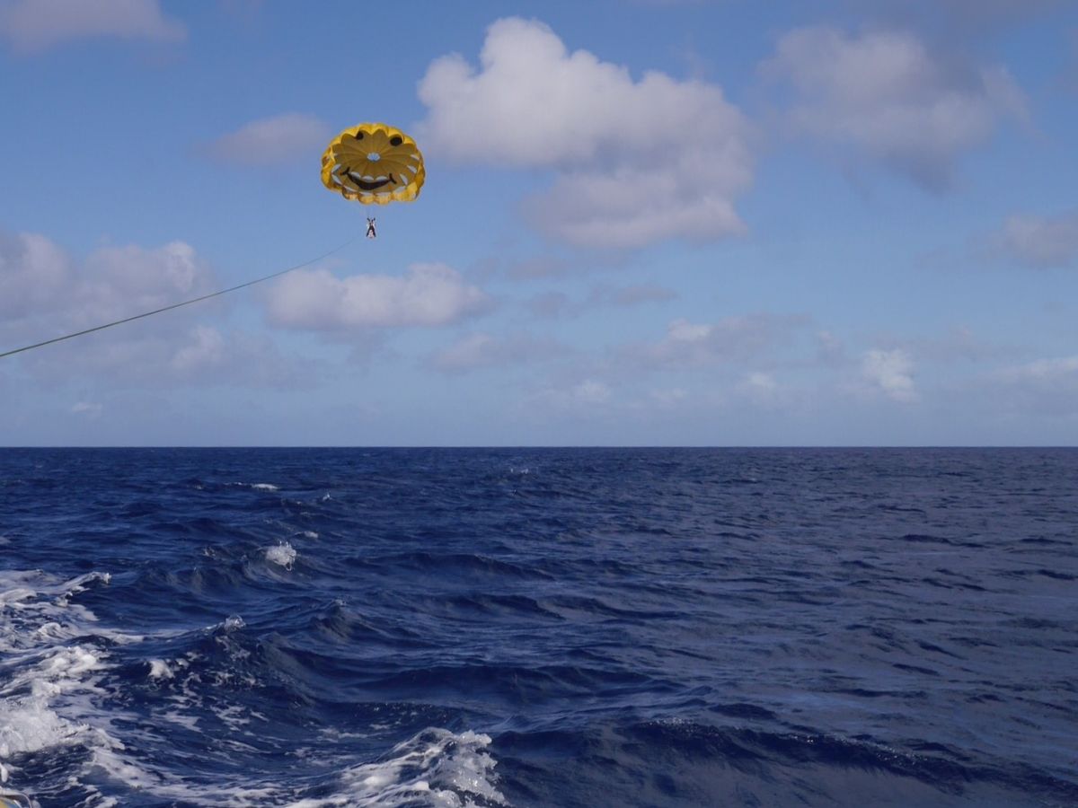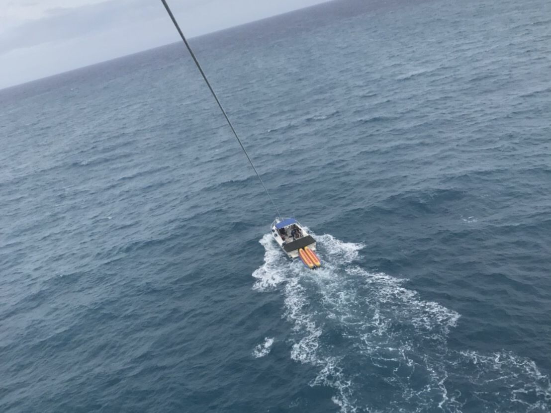 バナナボートで沖まで行って、パラセーリングの流れでした。